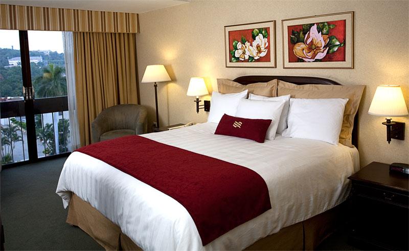 Hilton (Crowne Plaza) Hotel San Salvador cuenta con 195 habitaciones y suites, Un Centro de Convenciones con 23 salones modulares con capacidad para 3,000 personas en totalidad. Bar, Restaurante, Piscina, Gimnasio, Business Center, fax, Internet, transporte/transfer, agencia de viajes, alquiler de auto, room service, lavandería, caja de seguridad y parqueo seguro.